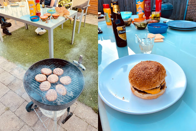 's Middags krijgen we bezoek van vrienden; er wordt voetbal gekeken en we genieten van het zonnetje in de tuin. Ook gaat voor het eerst de barbecue aan dit jaar. Heerlijk, wat een fijne dag is dit!